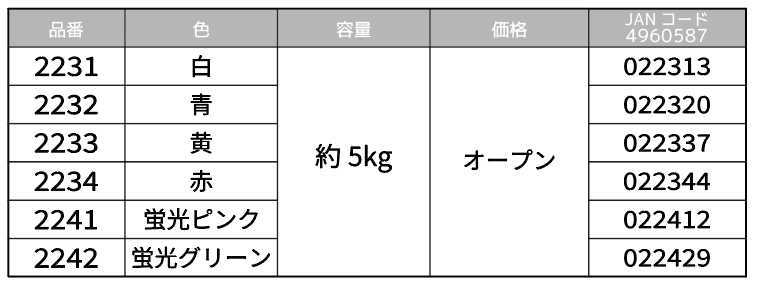 | 2231 | 白 | 約5kg | オープン | 4960587022313 |